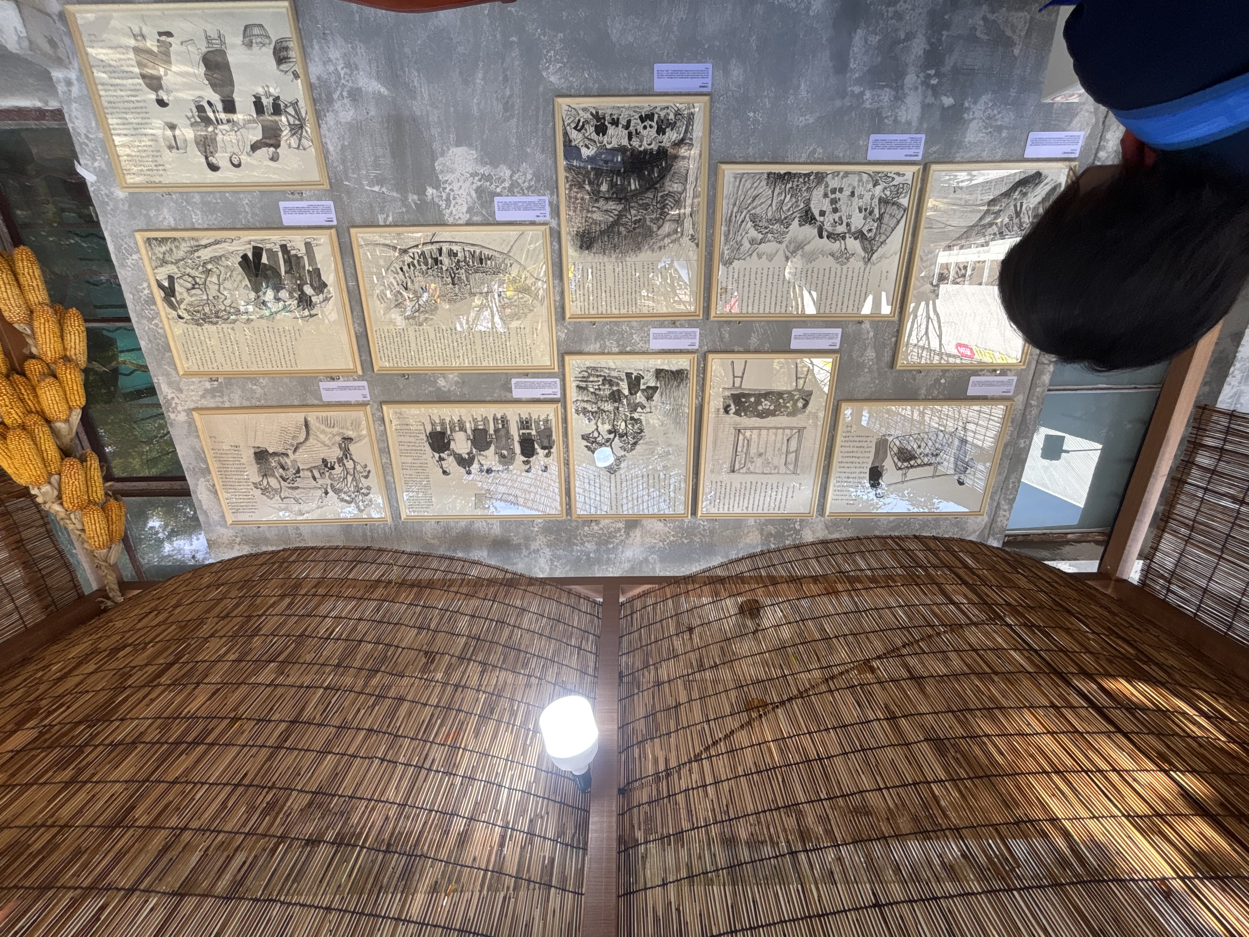 在“我是肖大妹——人生画展”现场,除了展出她的画与手稿之外,还复刻了她的“工作室”——房间的窗户边摆放着一台老款脚踏式缝纫机,角落里错落放着锄头等农具。“我的大半生,心里都像压着块大石头。”在画展旁边,“肖大妹”对封面新闻记者讲述她的故事。“前几年,我磨豆腐用了几十年的磨盘坏了,身体垮了。跟着我一起生活二十年的娘家兄弟,也因车祸离世。我觉得活着没意思。”